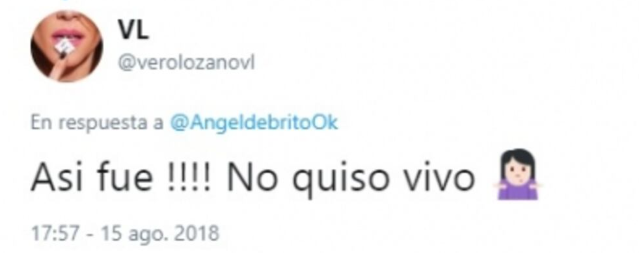 Verónica nie zignorowała tej informacji, podjęła wyzwanie i potwierdziła słowa dziennikarza z programu Los Ángeles de la Mañana: „Tak właśnie było!!!! Nie chciał występować na żywo”, poinformowała, dodając emoji kobiety wzruszającej ramionami.
