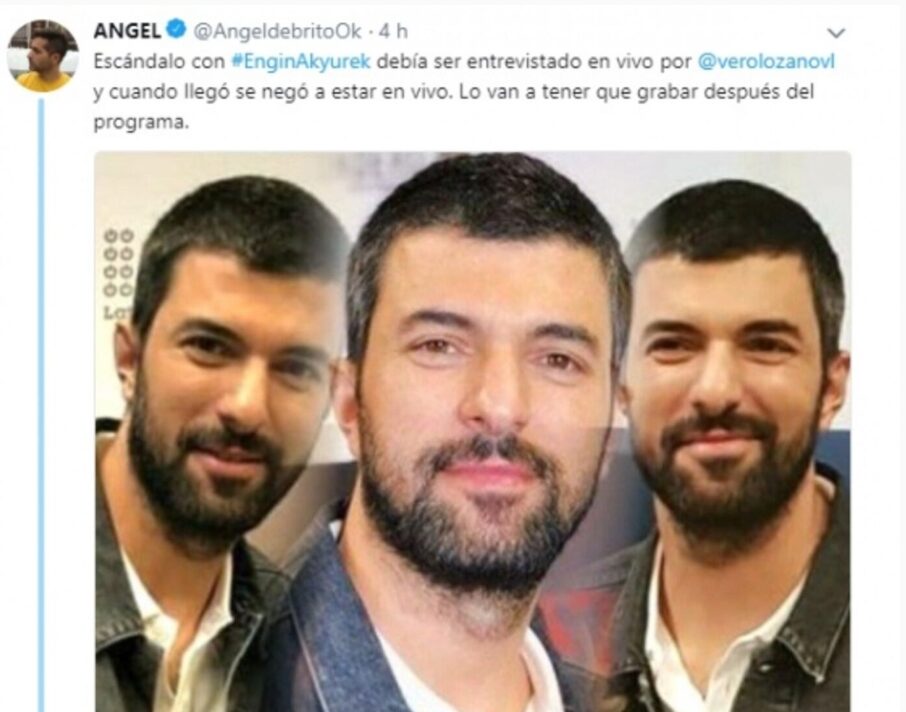 --------------------------------------------------------------------Ángel de Brito na Twitterze: „Skandal z #EnginAkyurek. Miał udzielić wywiadu na żywo Verónice Lozano, ale kiedy przybył, odmówił udziału w programie na żywo. Będą musieli nagrać wywiad po programie”.